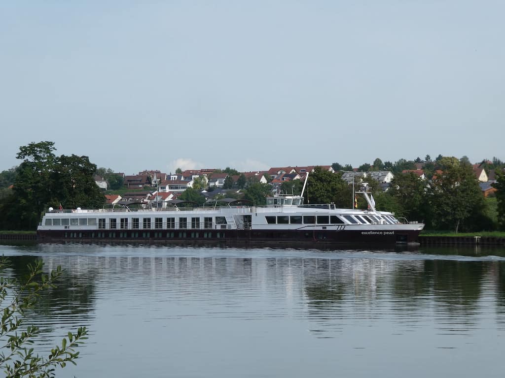 Am anderen Ufer liegt schon mindestens seit gestern ein Hotelschiff in Warteposition. Seine nervig lauten Generatoren laufen Tag und Nacht und sind sogar noch auf unserem Stellplatz zu hören.