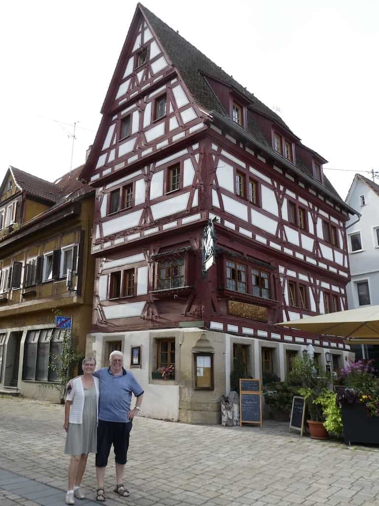 Bönnigheim ist ein sehr hübsches Städtchen. Das wissen auch viele andere zu schätzen. So hatten wir zuerst Mühe ein Lokal zu finden. Beim ersten kommt man nur auf Vorbestellung hinein. Beim zweiten, einem Biergarten, war Selbstbedienung. Die lange Menschenschlange vor der Theke bedeutete für uns eine unzumutbare Warterei. Beim dritten Lokal konnten wir dann endlich landen. Wir bekamen einen schönen Tisch im Freien, sehr gutes Essen und eine freundliche Bedienung.