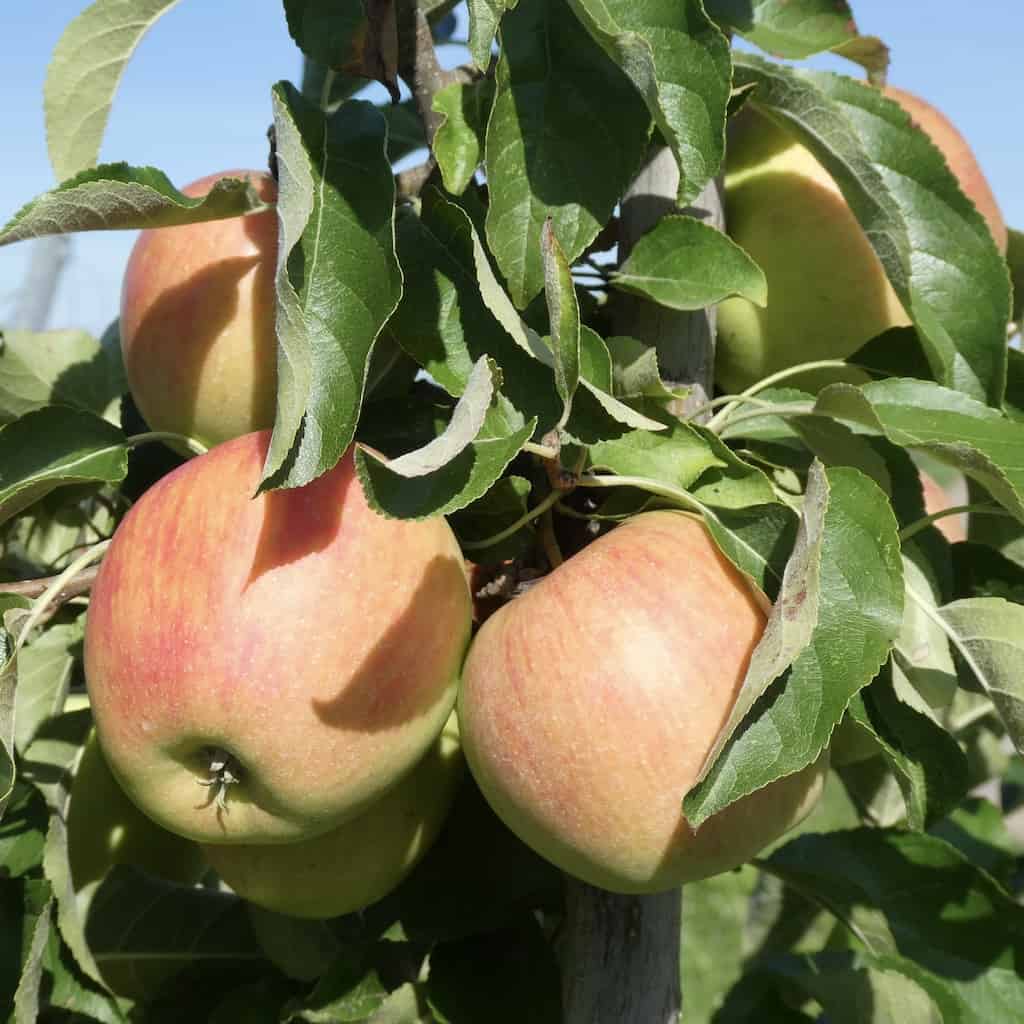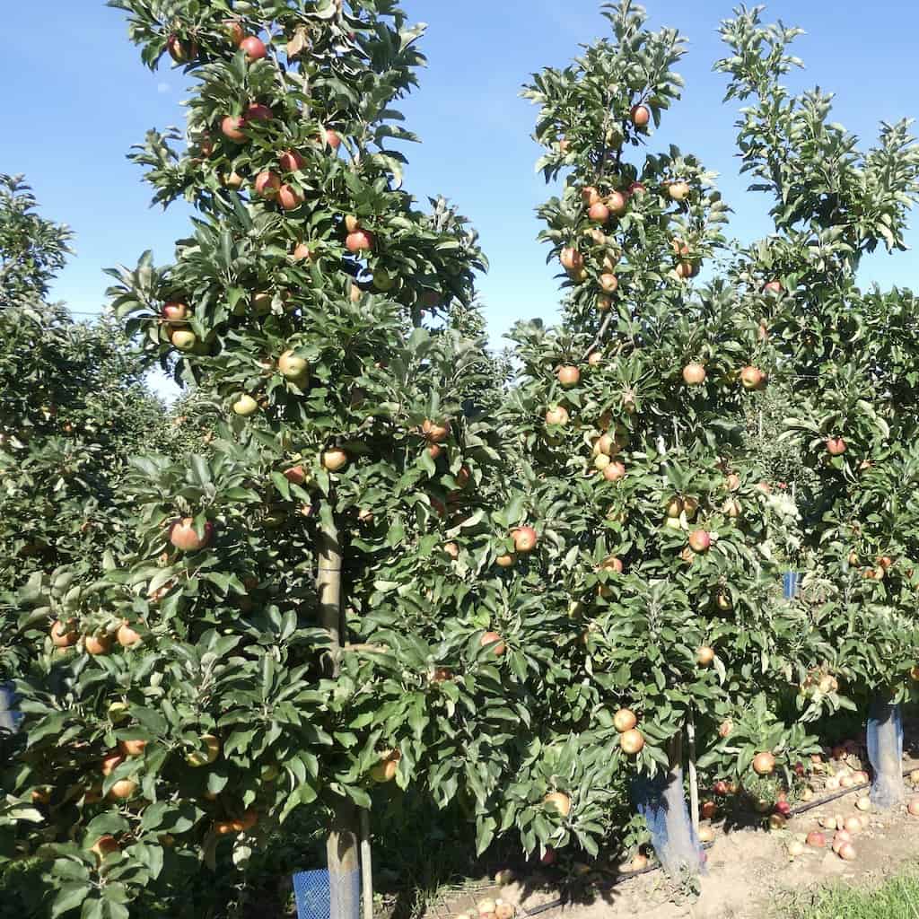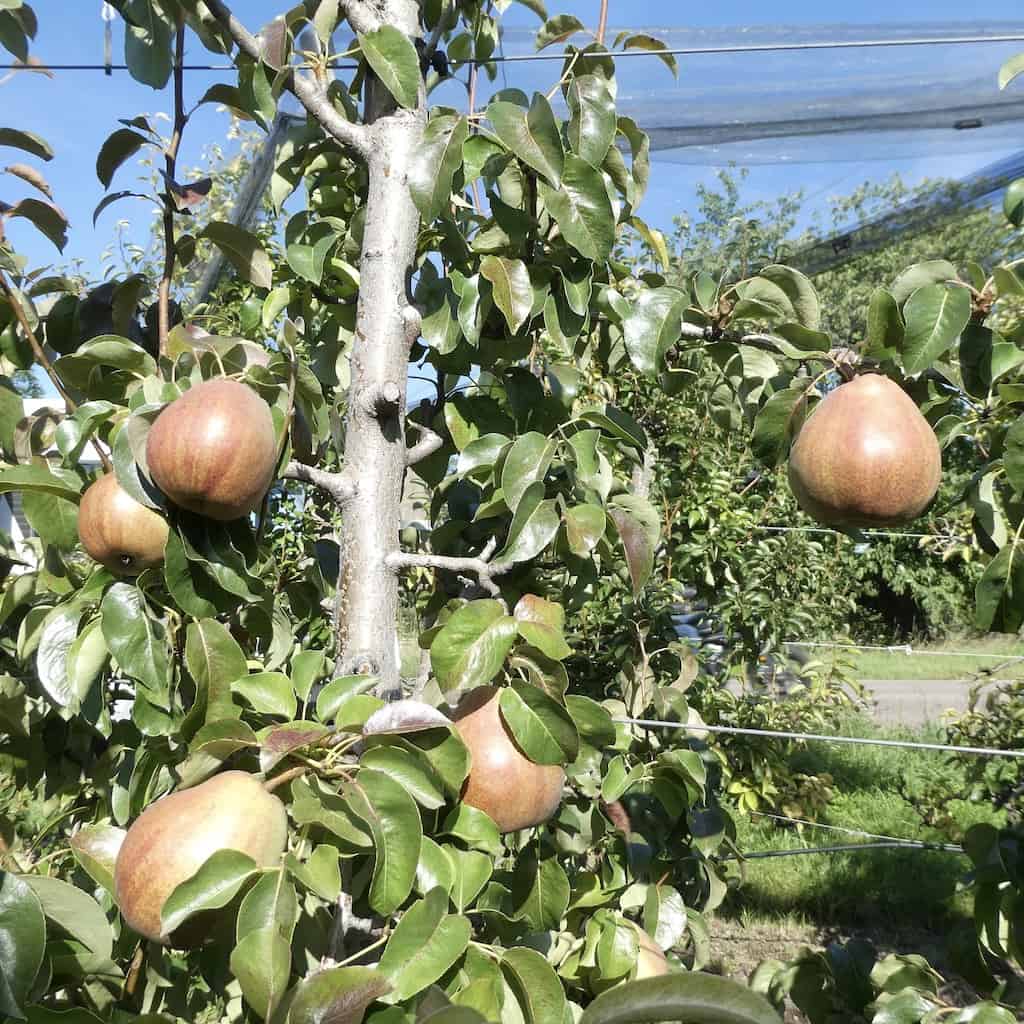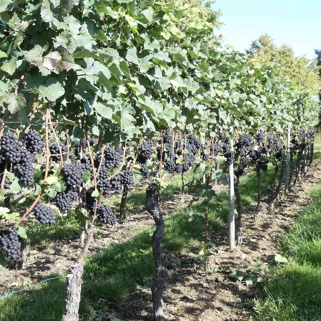 Links und rechts der Strasse wechseln sich Rebstöcke und Obstbäume ab. Es sieht nach einer guten Ernte aus.
