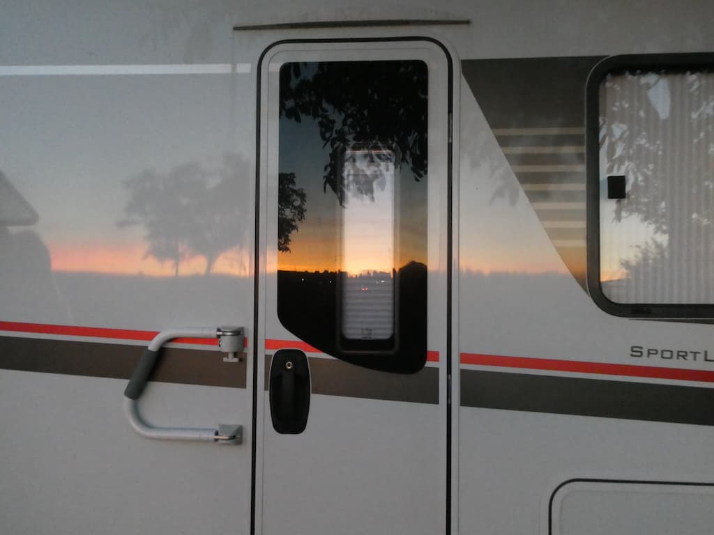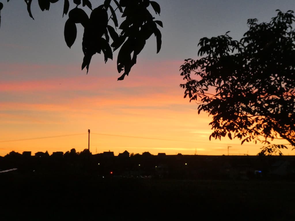 Ein Abendrot schliesst diesen ruhigen Tag feierlich ab. Und die Spiegelung im Mobi hat auch ihren Reiz.