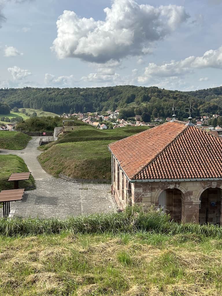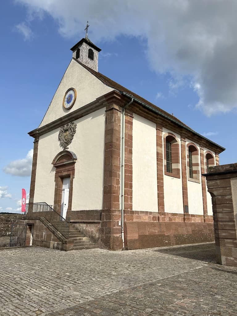 „Die Zitadelle von Bitsch, die die Stadt von ihrem rosa Sandsteinfelsen aus überragt, ist ein von Vauban im 17. Jahrhundert entworfenes Meisterwerk der Wehrarchitektur.