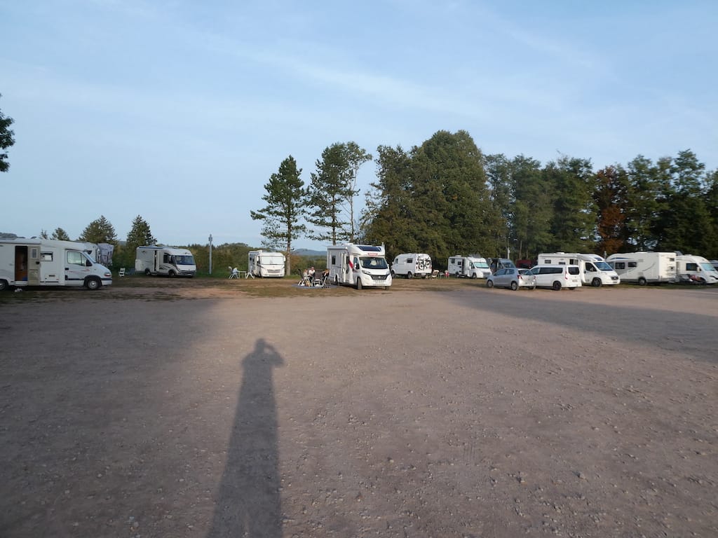 Zum Wochenende sind deutlich mehr Reisemobile gekommen. Aber in zwei Reihen nimmt dieser grosse Platz alle auf.