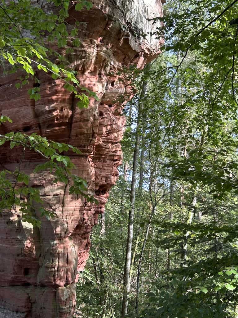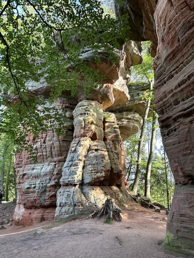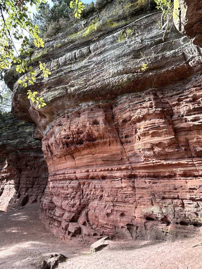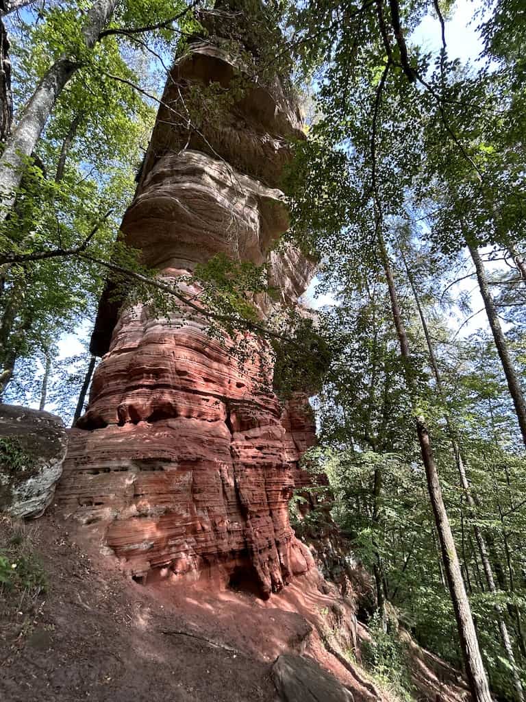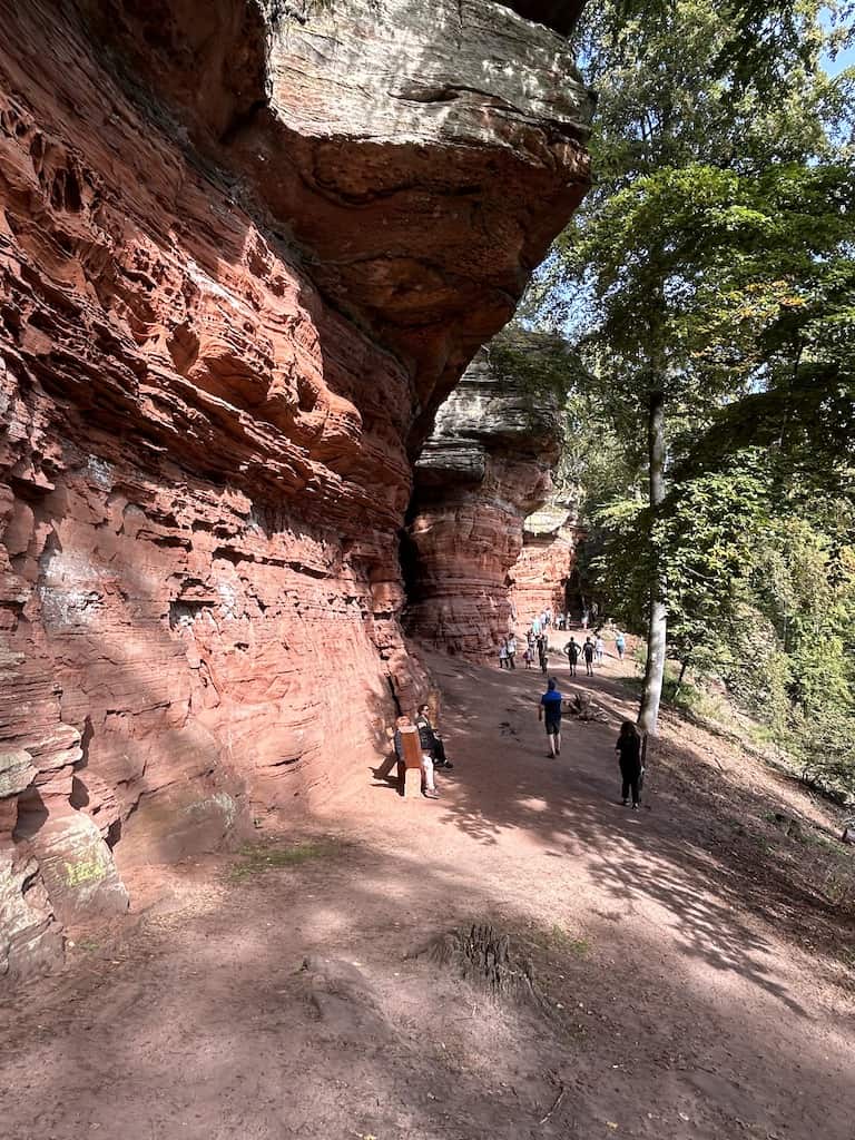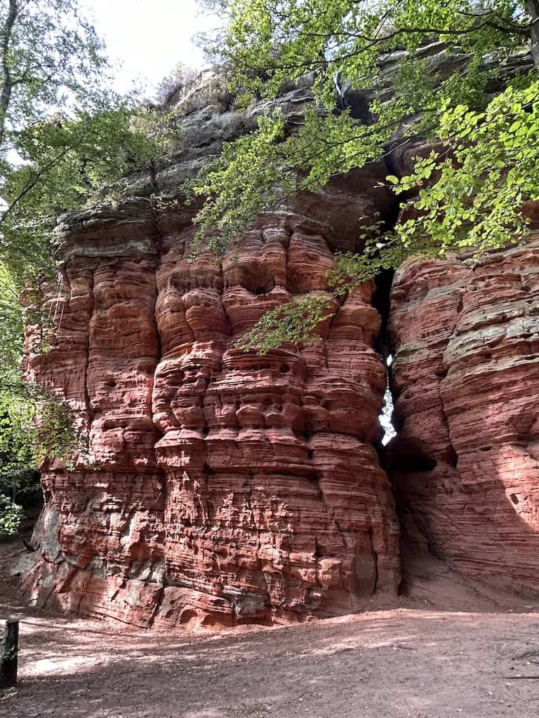 Wind und Wetter haben dem Buntsandsteinmassiv im Laufe der Zeit zugesetzt und bizarre Felsformationen hervorgebracht. Auf einer Länge von etwa 1.5 km erhebt sich eine bis zu 20 Meter Höhe aufragende Felswand. Ein natürliches Kunstwerk, durchzogen von filigranen Strukturen und in verschiedenen Rottönen schillernden Säulengalerien.