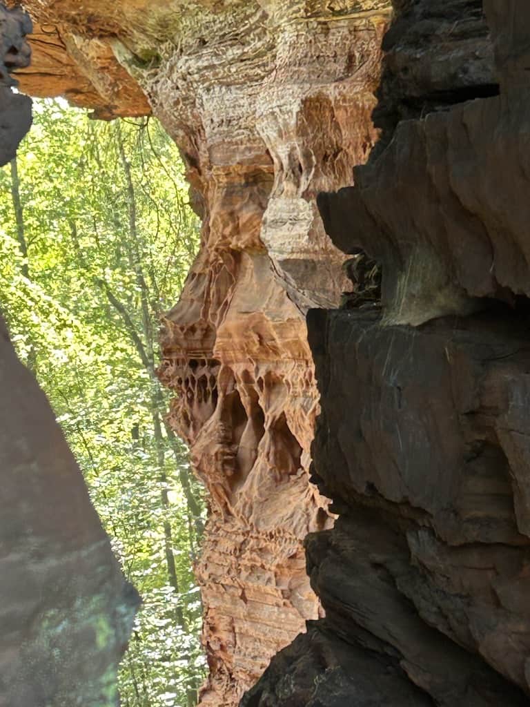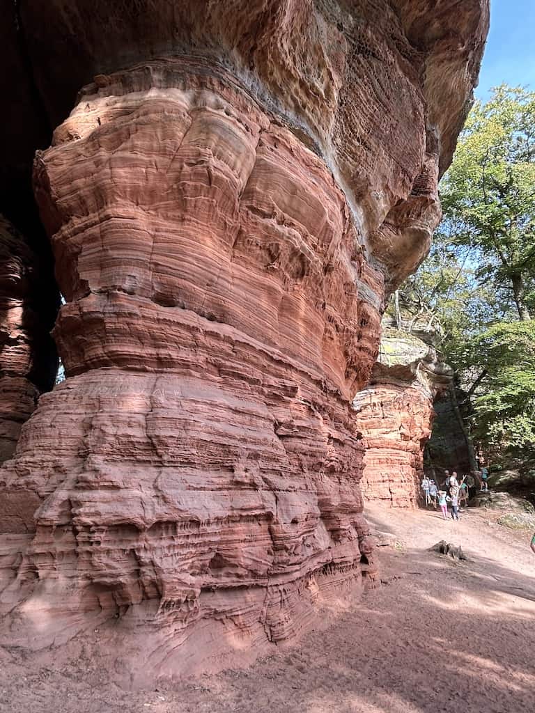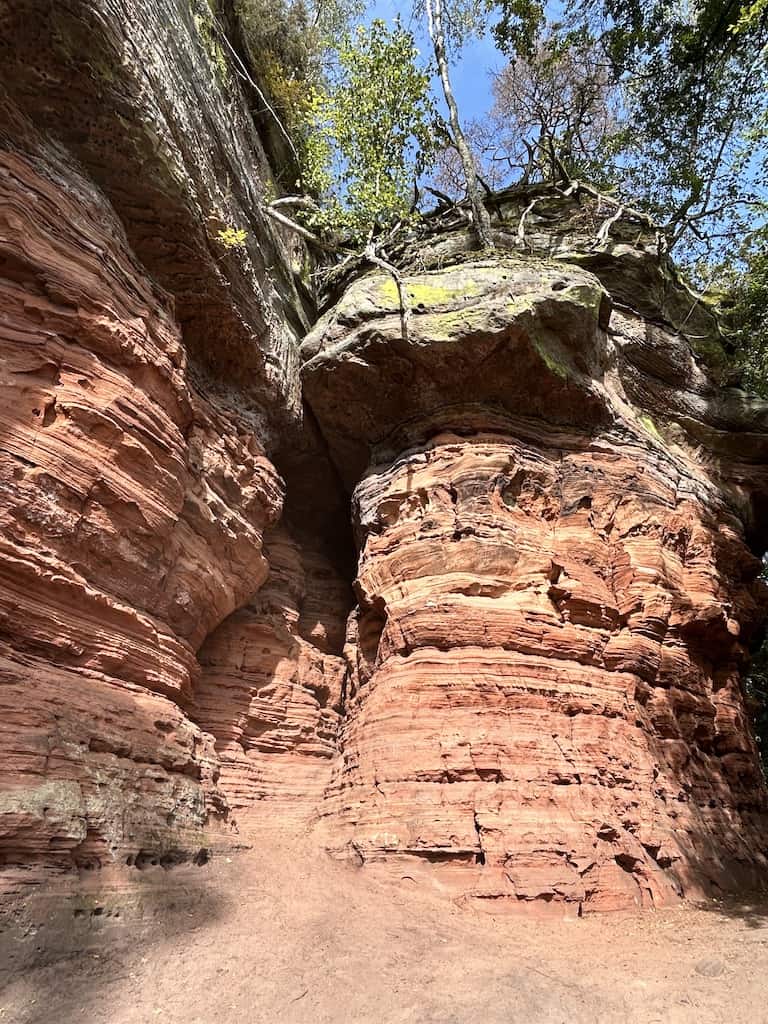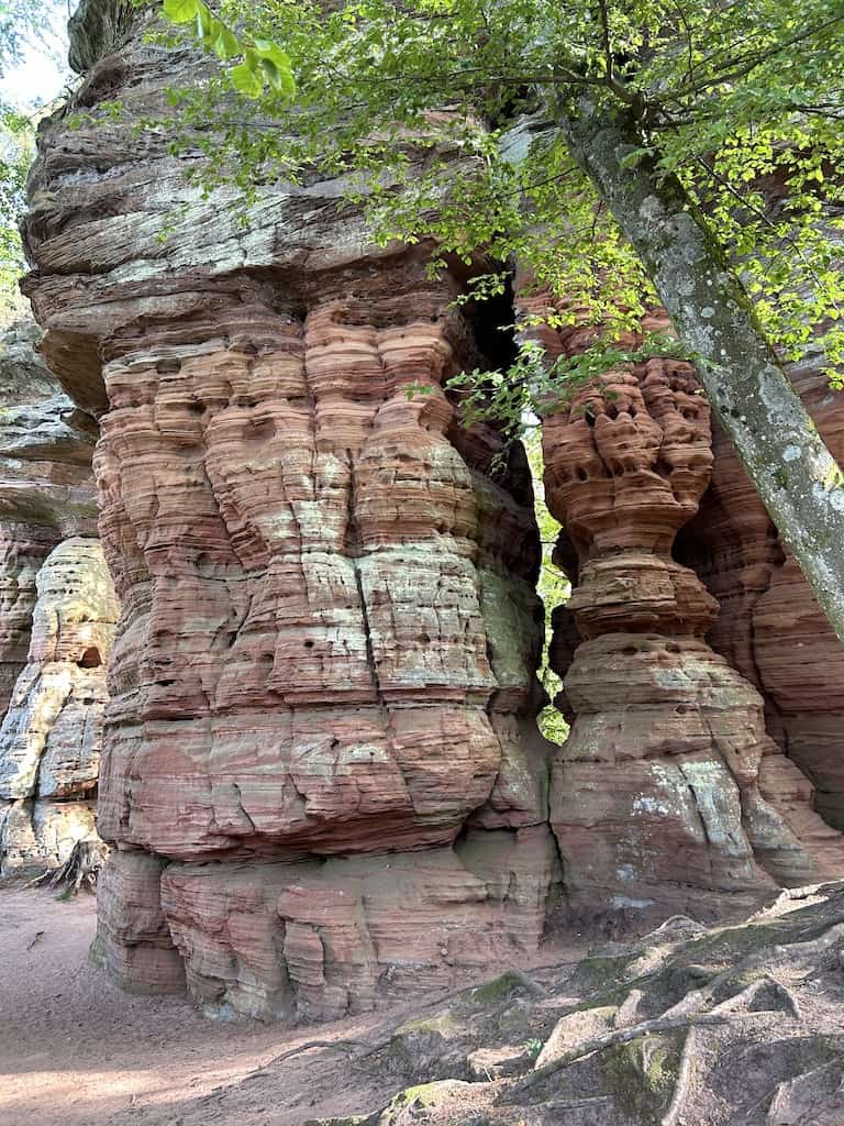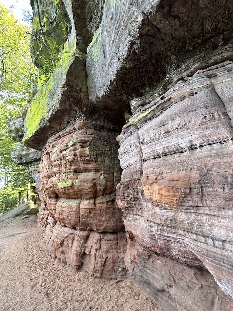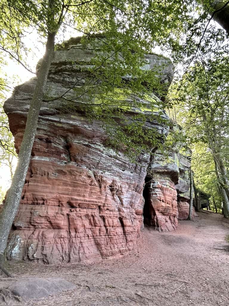 Wind und Wetter haben dem Buntsandsteinmassiv im Laufe der Zeit zugesetzt und bizarre Felsformationen hervorgebracht. Auf einer Länge von etwa 1.5 km erhebt sich eine bis zu 20 Meter Höhe aufragende Felswand. Ein natürliches Kunstwerk, durchzogen von filigranen Strukturen und in verschiedenen Rottönen schillernden Säulengalerien.