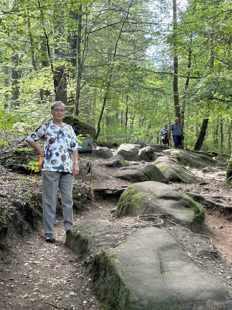 Von einem Waldparkplatz laufen wir erst einmal 2 Kilometer leicht ansteigend. Dann führt der Weg steiler bergan über Stock und Stein, bis wir gut temperiert zu den Felsen kommen. Wir merken beim Anstieg, dass wir nicht mehr die Jüngsten sind, aber wir schaffen das. Es ist die Mühe wert und wirklich ein lohnendes Erlebnis, wie folgende Bildergalerie zeigt: