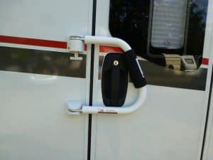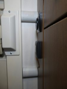 Man hört ja immer wieder von Einbrüchen in Reisemobile. Wir machen uns da auch keine Illusionen: mit genügend krimineller Energie und Zeit kommt man in jedes Fahrzeug rein. Aber man kann es den Typen etwas schwerer machen. Das hält vielleicht schon von dummen Gedanken ab. Wir haben nur zwei Eingänge. Die Fahrertür, die wir von innen zusätzlich blockieren können und die Aufbautür, die wir zusätzlich sichern möchten.